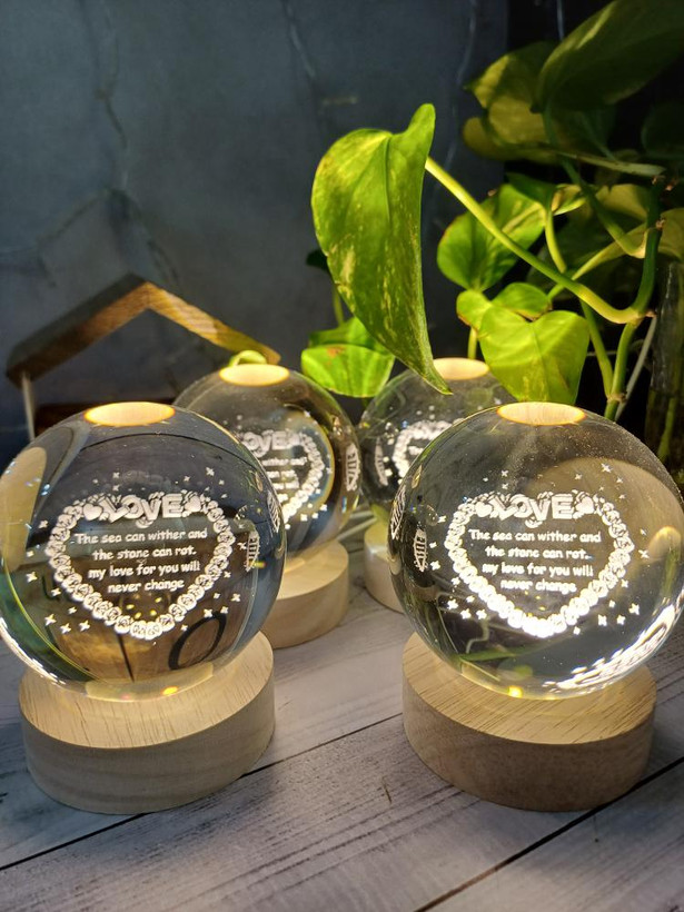 چراغ خواب گوی کریستالی طرح قلب با نوشته LOVE