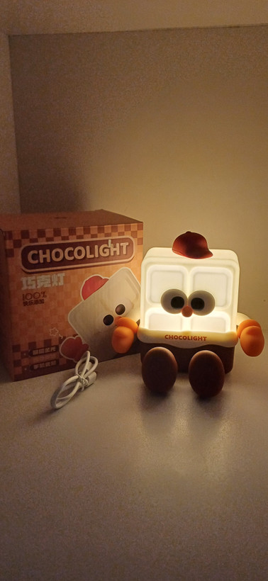 ⦁ طراحی جذاب: شکل ظاهری این چراغ خواب شبیه به شکلات است که به زیبایی دکوراسیون اتاق کمک میکند.