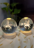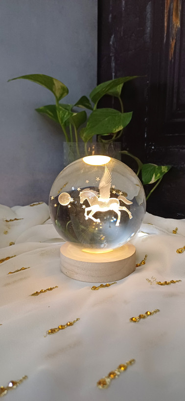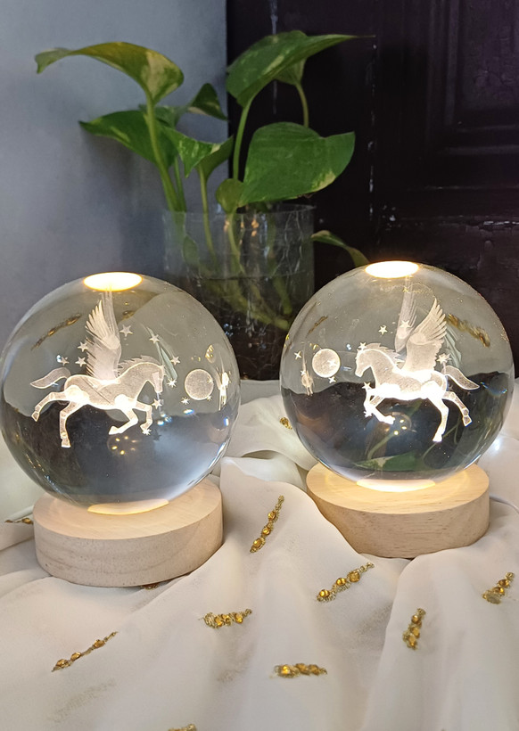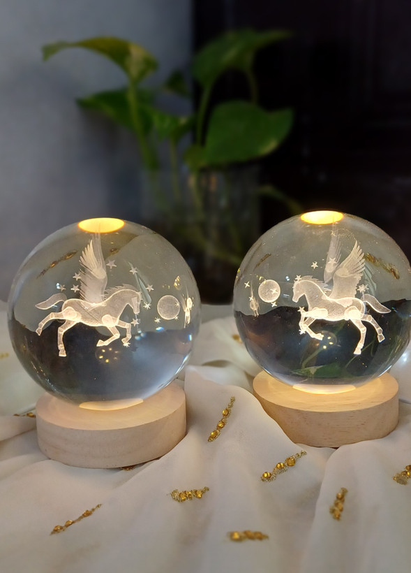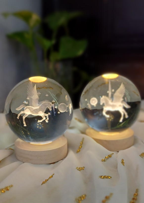 گوی کریستالی اسب بالدار، نمادی از زیبایی و جادو در دنیای هنر و تخیل است. این گوی شفاف و درخشان، با طراحی دقیق و ظریف، تصویری از یک اسب بالدار را درون خود جای داده است. اسب با بالهای بزرگ و پرتوان، به شکلی هنرمندانه و واقعگرایانه مجسم شده است، گویی در حال پرواز به سوی آسمان است.