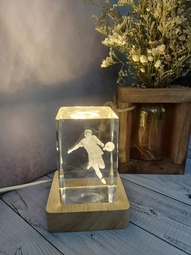 گوی کریستالی بازیکنان فوتبال، شاهکاری از هنر و الهام است. مجسمههای کروی و شفاف که درون آن، تصویری دقیق و خیرهکننده از بازیکنی مانند رونالدو حک شده است. جزئیات چهره و فرم بدن، قدرت و مهارت او در میدان هستند. نور که بر سطح کریستال میتابد، چهره و حرکتهای پویا را به زندگی میآورد، گویی که ورزش در آن جاری است. این گوی، ترکیبی از افتخار، شور و یادبود لحظات طلایی فوتبال است، مناسب برای کلکسیونرها و هواداران پرشور.