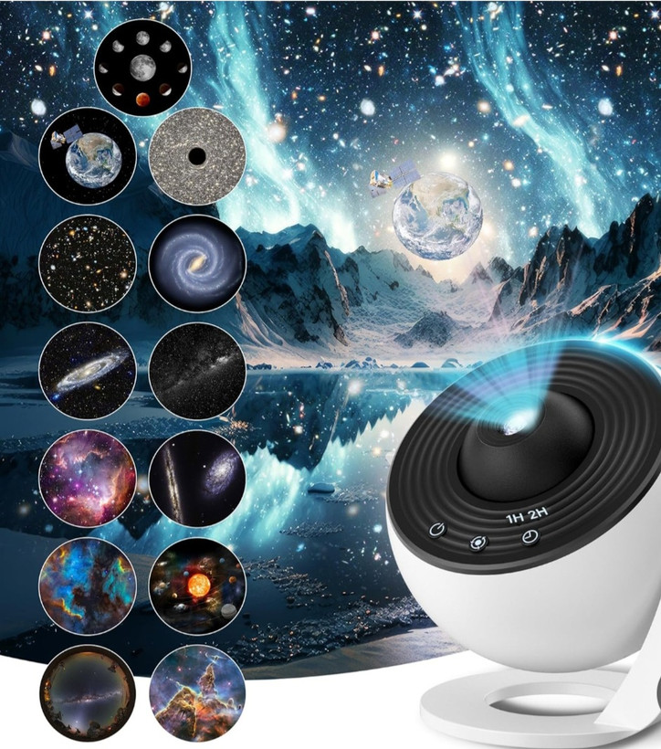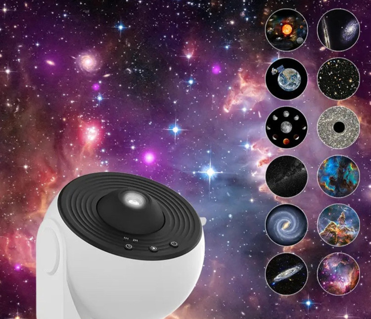 پروژکتور ۱۳ دیسک یک نوع پروژکتور است که با استفاده از ۱۳ دیسک مختلف، تصاویر متنوعی از جمله کهکشانها، سیارات، منظومه شمسی و سایر طرحهای مرتبط با فضا را به نمایش میگذارد. این پروژکتورها معمولاً دارای قابلیتهایی مانند چرخش ۳۶۰ درجه، تنظیم فوکوس و کیفیت تصویر بالا (تا 4K برای برخی مدلها) هستند.