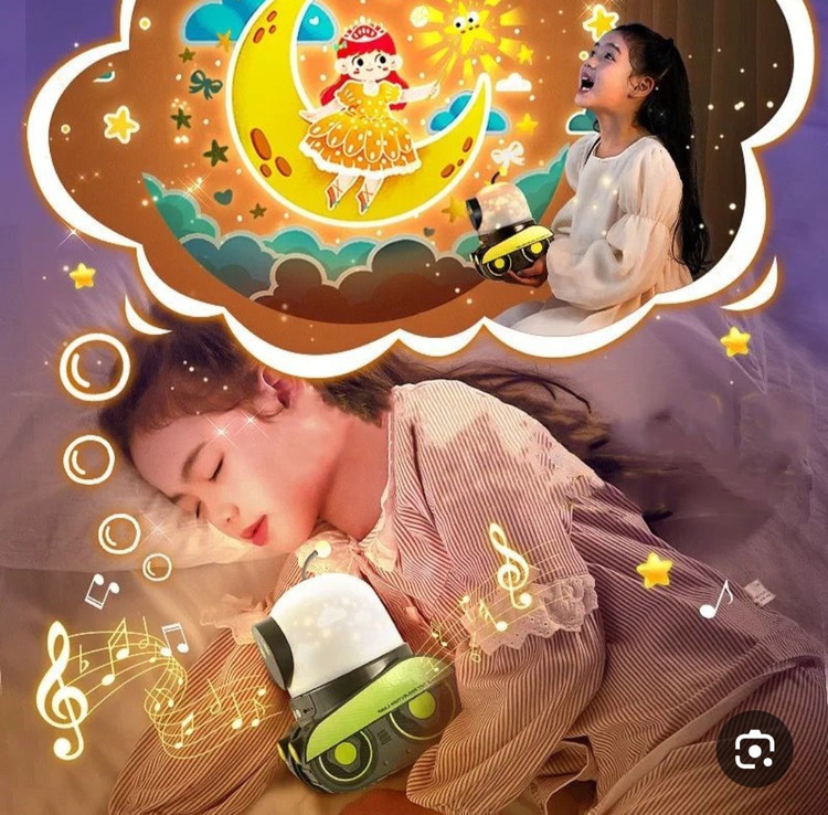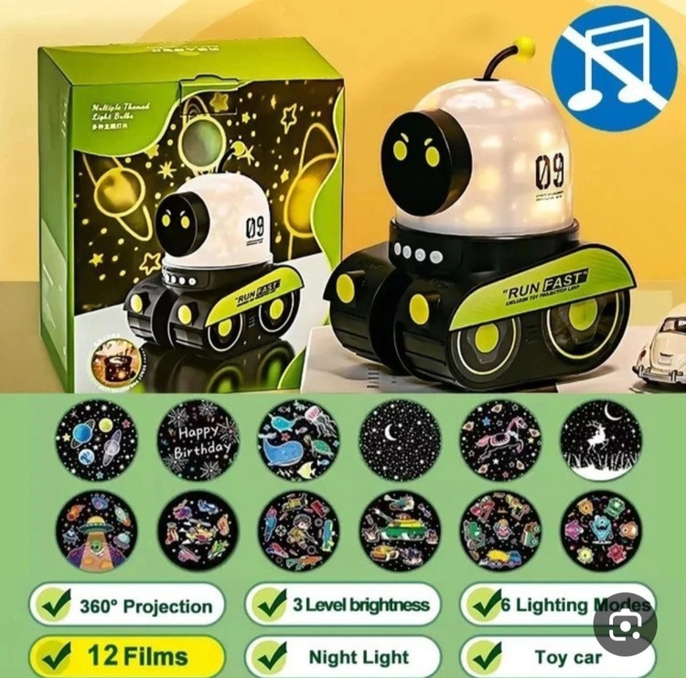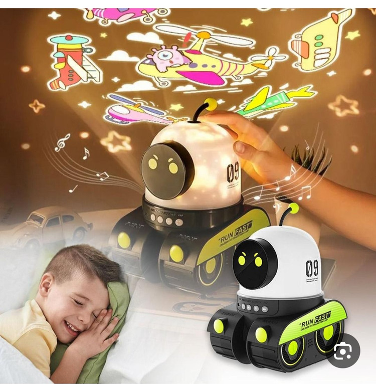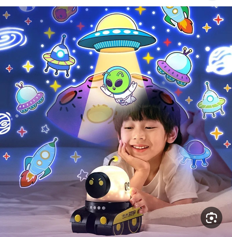 دارای اسلایدهای نگاتیوی با طرحهای مختلف (مانند کهکشان، حیوانات، شخصیتهای کارتونی) که با چرخش چراغ، بر روی سقف و دیوار پخش میشوند.