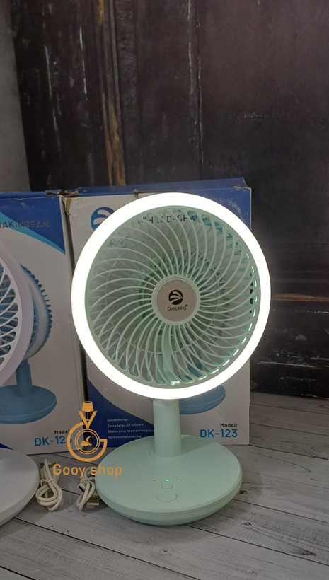 جنس پره: پلاستیک تعداد حالت پرتاب باد: 3 حالت نوع کلید فشاری حداکثر پرتاب باد: حدود 2 متر مدت زمان پرتاب باد کم: حدوداً 4 ساعت مدت زمان پرتاب باد متوسط: حدوداً 3 ساعت مدت زمان پرتاب باد زیاد: حدوداً 1.5 ساعت قابلیت تنظیم زوایه پرتاب باد: دارد ( 45 درجه ) نوع شارژر: 5 ولت 1 آمپر – USB-C باتری های سازگار: 2 عد باتری 3.7 ولت 18650 ظرفیت باتری: 3000 میلی آمپر مدت زمان شارژ اولیه: 6 تا 8 ساعت رینگ لایت: دارد مشخصات فنی ارتفاع کلی: 280 میلی متر قطر سر پنکه: 175 میلی متر توان موتور: 6 وات قدرت لامپ: 1.8 وات – 40 ال ای دی جنس بدنه: پلاستیک ABS نوع استفاده: رومیزی ، اداری ، خانه ، کمپینگ ، ماشین و دیگر فعالیت ها محتویات داخل بسته پنکه رومیزی دیپکینگ DK-123 2 عدد باتری 3.7 ولت شارژی 18650 کابل شارژ USB-C