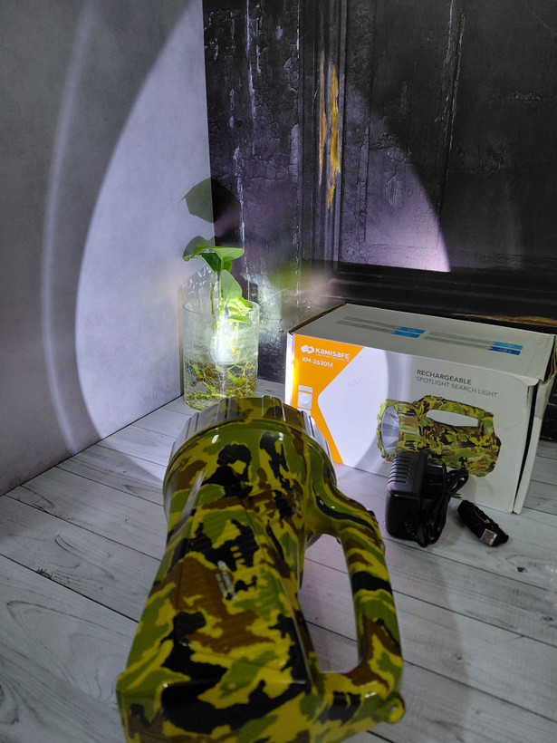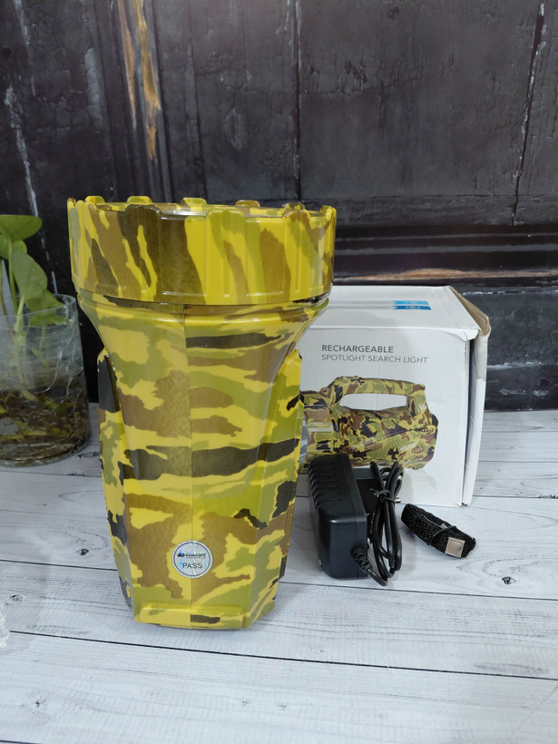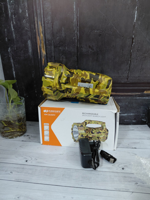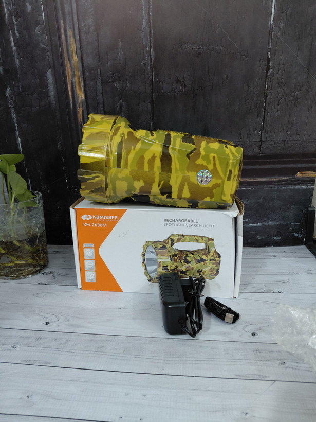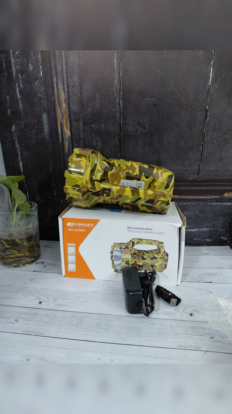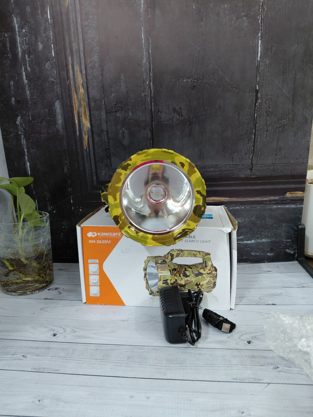 از برند کامی سیف (KamiSafe) یک نورافکن دستی با بدنه مقاوم و طراحی ارگونومیک است. این چراغ قوه دارای دو حالت نوردهی قوی و ضعیف است و برد نور آن حدود 180 تا 200 متر است. از ویژگیهای دیگر آن میتوان به باتری قابل شارژ از طریق پورت USB و بدنه از جنس پلاستیک ABS اشاره کرد.