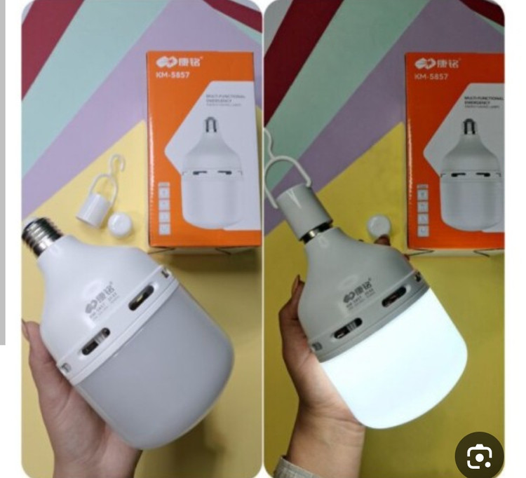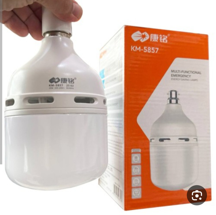 💡لامپ شارژی KM-5856 محصولی از شرکت کامی سیف است که با ذخیره انرژی در خود می تواند حتی در صورت قطعی برق نیز نور تولید کند. این چراغ با استفاده از سرپیچ خود به برق شهری متصل شده و همزمان با تولید نور در خود انرژی ذخیره می کند. این چراغ اضطراری از یک باتری داخلی ۲۴۰۰ میلی آمپر ساعتی بهره برده و دارای نور مهتابی رنگ می باشد. در صورت قطعی برق لامپ بطور خودکار از باتری لیتیوم یونی خود استفاده کرده و بصورت اتوماتیک و بدون دخالت شخص روشن می شود. این چراغ LED از توان حداکثر ۱۲ وات برخوردار بوده و در برابر نوسانات جریان برق مقاوم است.