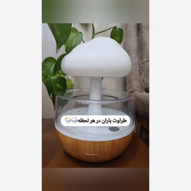 دستگاه مرطوبکننده ابر باران زا دارای ویژگیهای جذابی است که به آرامی رطوبت را به اتاق اضافه میکند. این طراحی زیبا میتواند تزیینی جذاب برای فضای شما باشد.