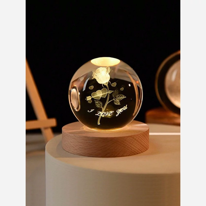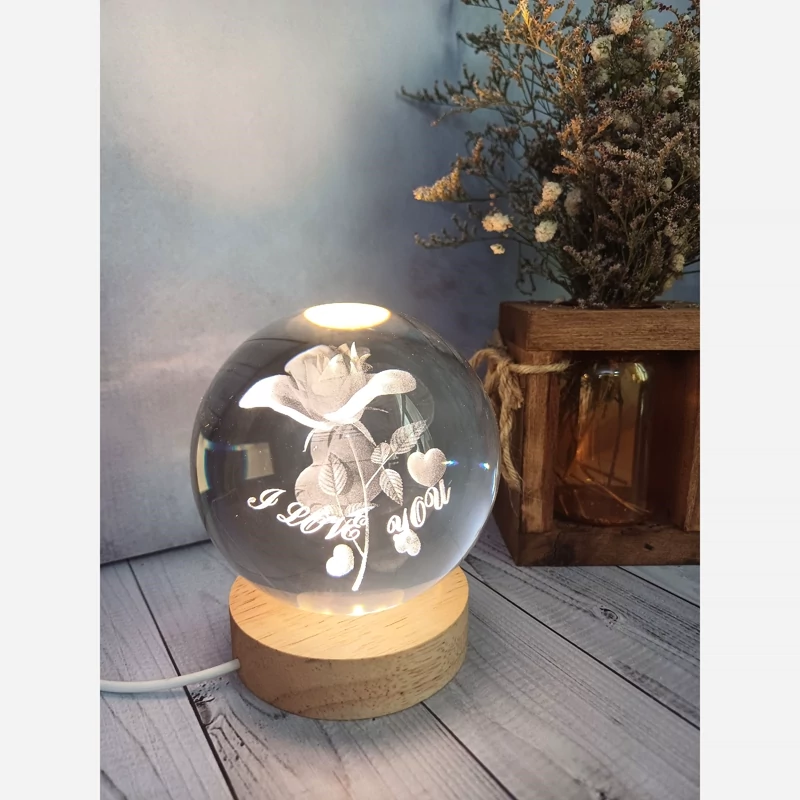 چراغ خواب گوی کریستالی طرح عاشقانه گل رز بانوشتهILOVEYOU