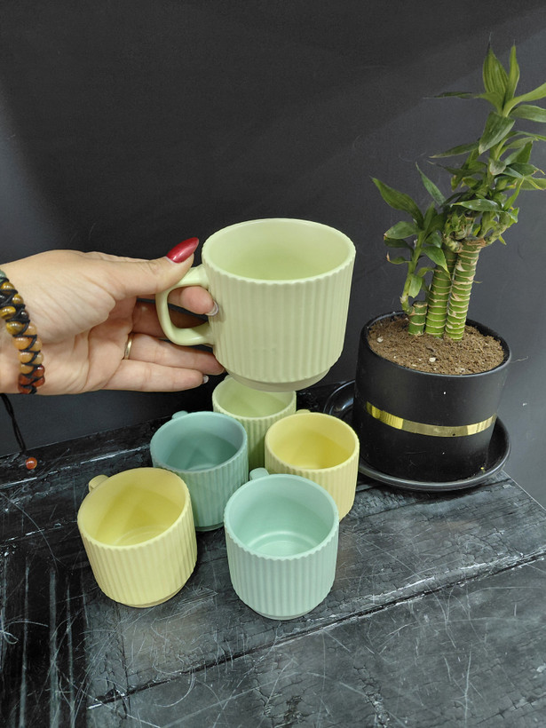 ☄️ نام کالا: ماگ سرامیکی رنگی شیاردار طرح ایکیا کیفیت عالی ✨